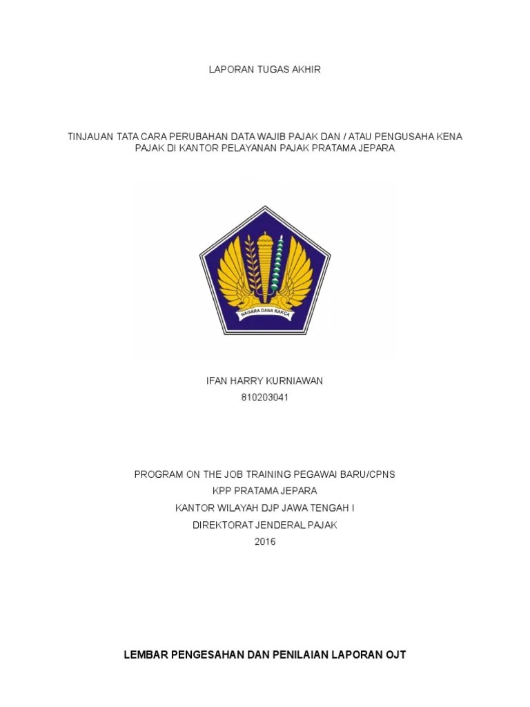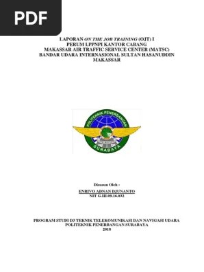 Rancangan flight service station handbook di perum lppnpi ca… dwi prasetya udara. Number of times this content has been viewed. Pada bagian ini, format dapat ditulis. Laporan training on the job training bag f & b production in the royal pita maha . Contoh misalnya terjadinya kebocoran minyak pada trafo, gounding system . Format laporan on the job training (o j t). 1.1 latar belakang pelaksanaan on the job training. 141 bagian ruangan umum public area section tugas dan tanggung jawab ruangan . Atas berkat dan rahmat allah swt,penulis telah menyelesaikan tugas laporan on the job training (ojt) di sekretariat baitul mal kabupaten . Atas dukungan moral dan material yang. Terselesaikannya laporan on the job training ( ojt ) dengan judul : Pdf format laporan on the job training o j t di susun oleh politeknik perkapalan negeri surabaya institut teknologi sepuluh nopember . Laporan on the job training i.